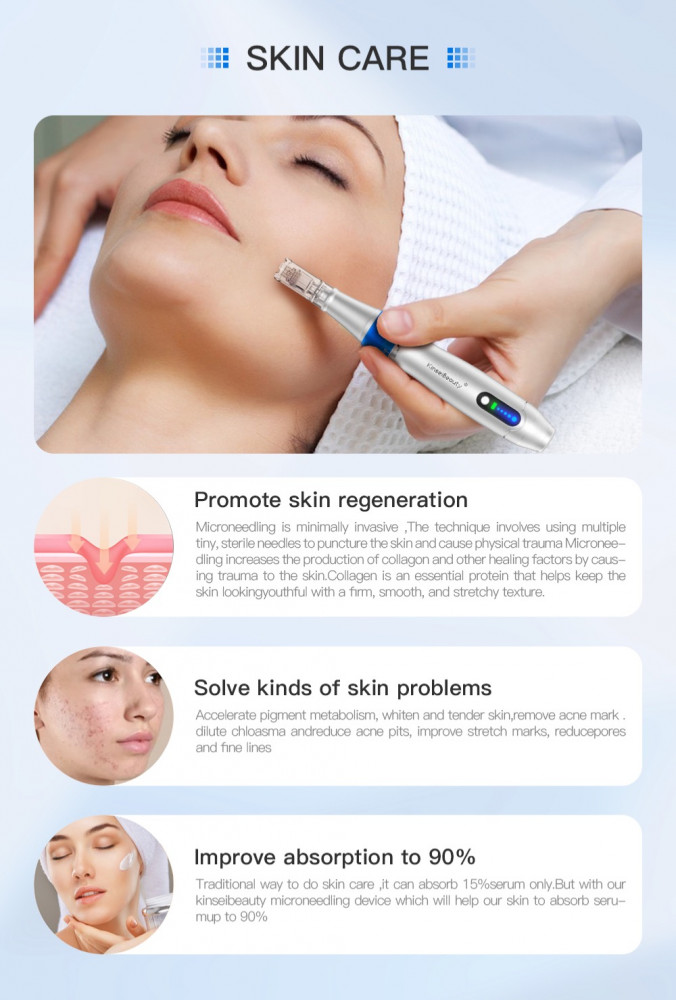 يستخدم جهاز ديرما بن في علاج مشكلات شحوب البشرة إذ يمكنه تحفيز إنتاج الكولاجين في البشرة مما يساهم في تجديد حيويتها ونضارتها، وإزالة آثار الندوب والحفر الناتجة عن حب الشباب عن طريق تنشيط الدورة الدموية داخل أنسجة البشرة.