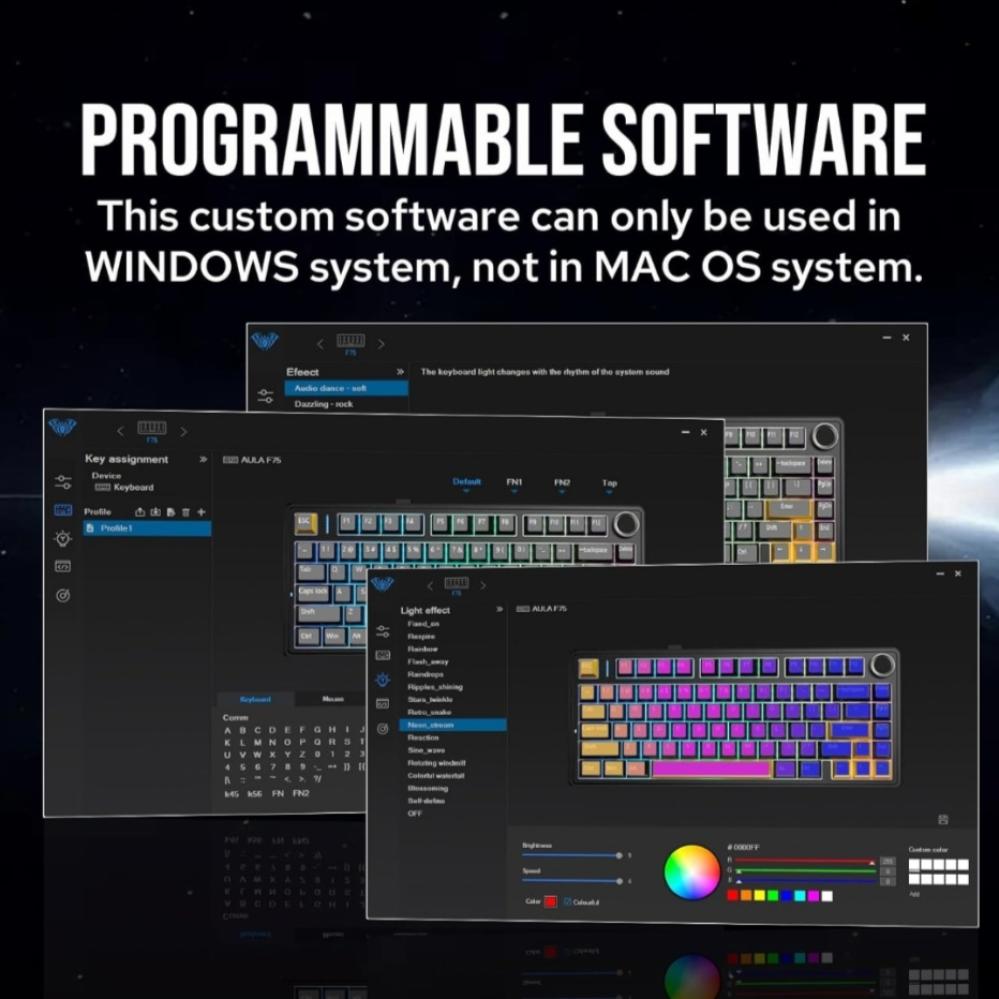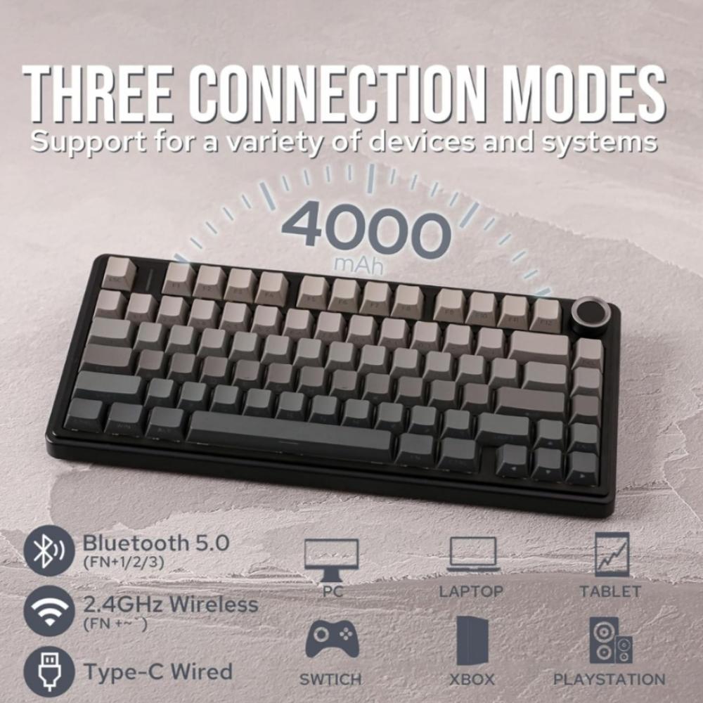 لوحة مفاتيح ألعاب ميكانيكية قابلة للتبديل السريع بنسبة 75% من اكس اولا F75 ايبوميكر - بطانة خمس طبقات وأزرار بلوتوث / لاسلكي / USB-C RGB أسود مفتاح ليونج ريبر