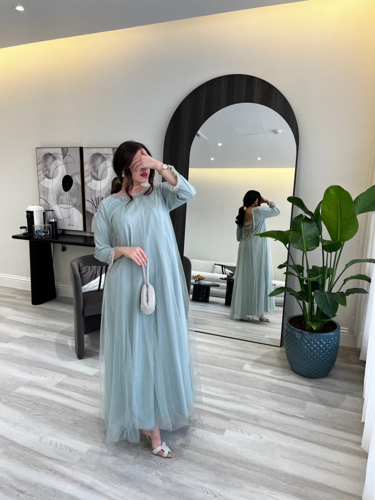 جلابية تل لمعة وهدب خرز (سماوي)
