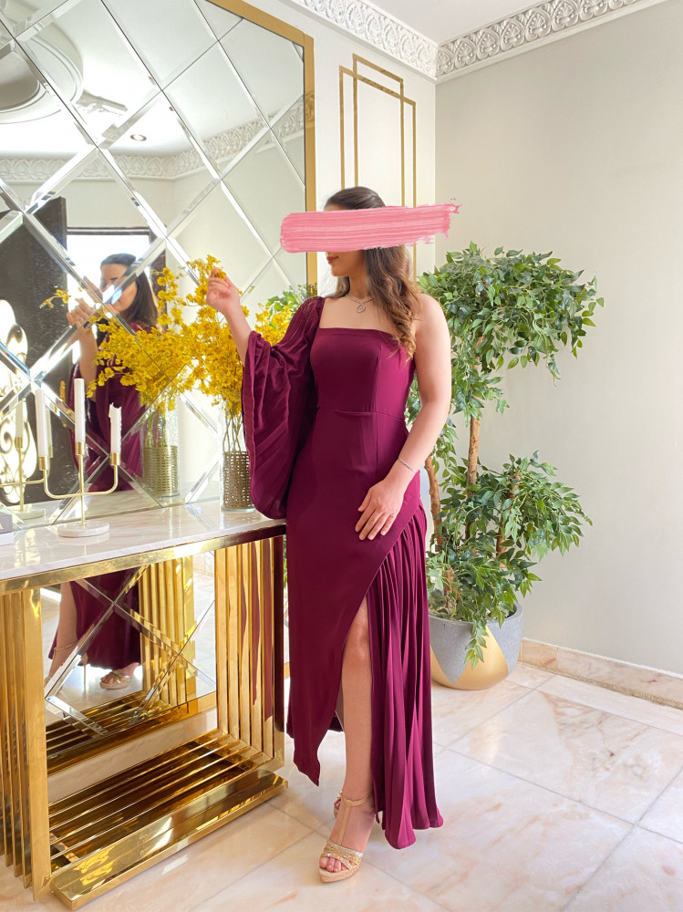 فستان كريب عنابي تكسير