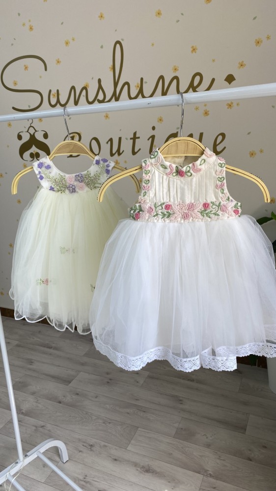 فستان مواليد مع ياقه باللون الموف تطريز يدوي