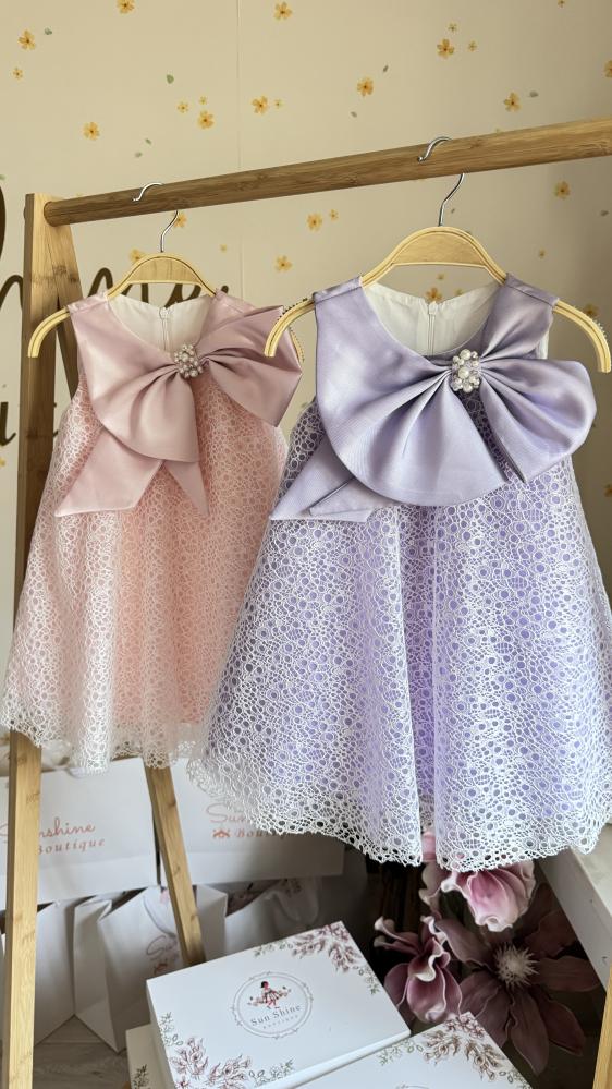 فستان موف بفيونكه عالصدر من ٢ سنه الى ٧ سنوات