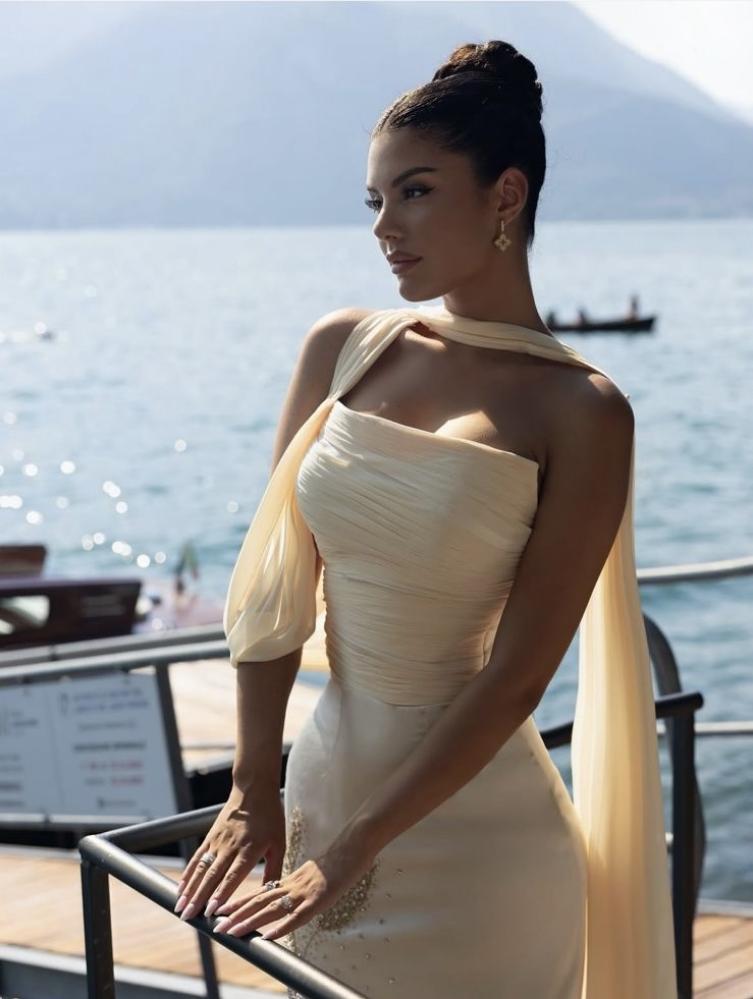 فستان اصفر مع شك يدوي ودرابيه ( ٢٤ يوم عمل )