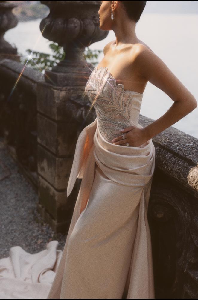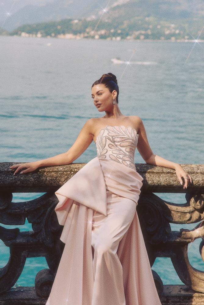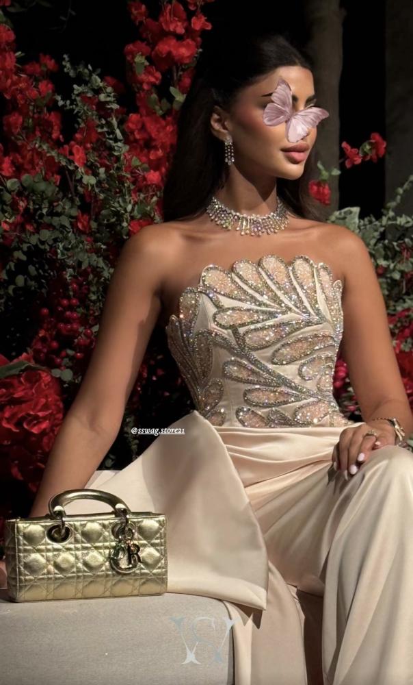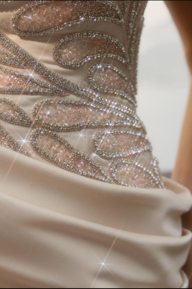 فستان بيج مع شك يدوي (٢٤ يوم عمل )