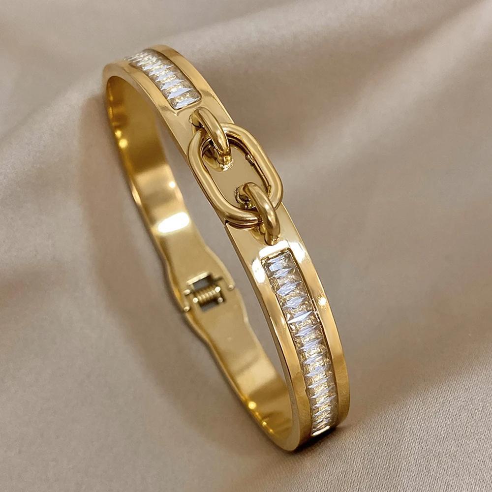 سوار ساحر من الزركونيا المكعبة للنساء والرجال، يتميز بتصميم عصري وأنيق مصنوع من الفولاذ المقاوم للصدأ، مما يضمن له المتانة والقدرة على التحمل. يأتي السوار على شكل أساور كفة، مطلية بالذهب لإضفاء لمسة من الفخامة والتألق. الزركونيا المكعبة تضيف لمعة رائعة وتزيد من جاذبية السوار، بينما يجعل المشبك القفل السوار آمنًا وسهل الاستخدام. بالإضافة إلى ذلك، السوار مقاوم للماء، مما يجعله مثاليًا للاستخدام اليومي دون القلق بشأن تلفه. هذا السوار يعد خيارًا مثاليًا للمناسبات الخاصة أو كهدية فاخرة.