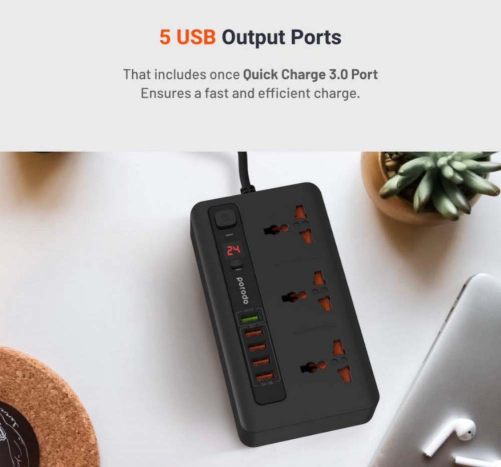* تحتوي على 5 منافذ USB لشحن جميع اجهزتك