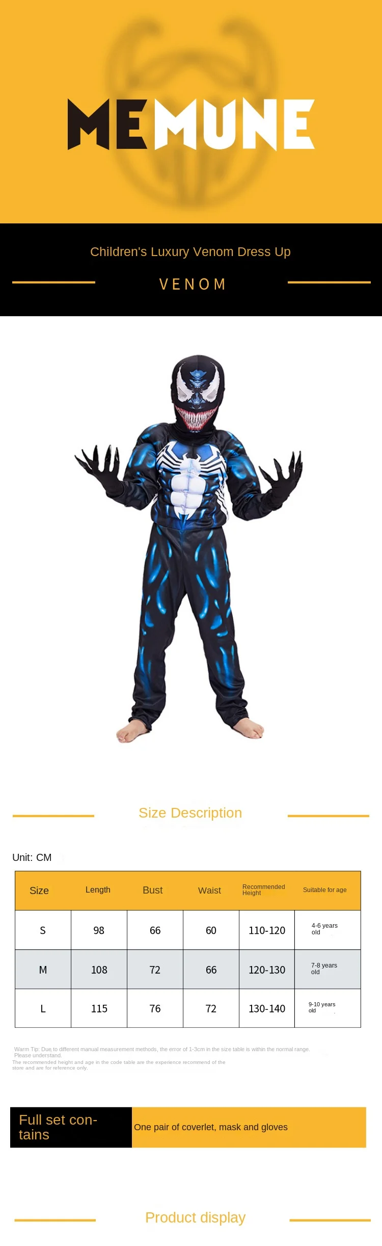 أزياء فينوم البطل الخارق التنكرية للأطفال ، لعب الأدوار ، الرعب ، ارتداء الملابس المتشابكة ، أنيمي ، عيد الهالوين ، الحفلة