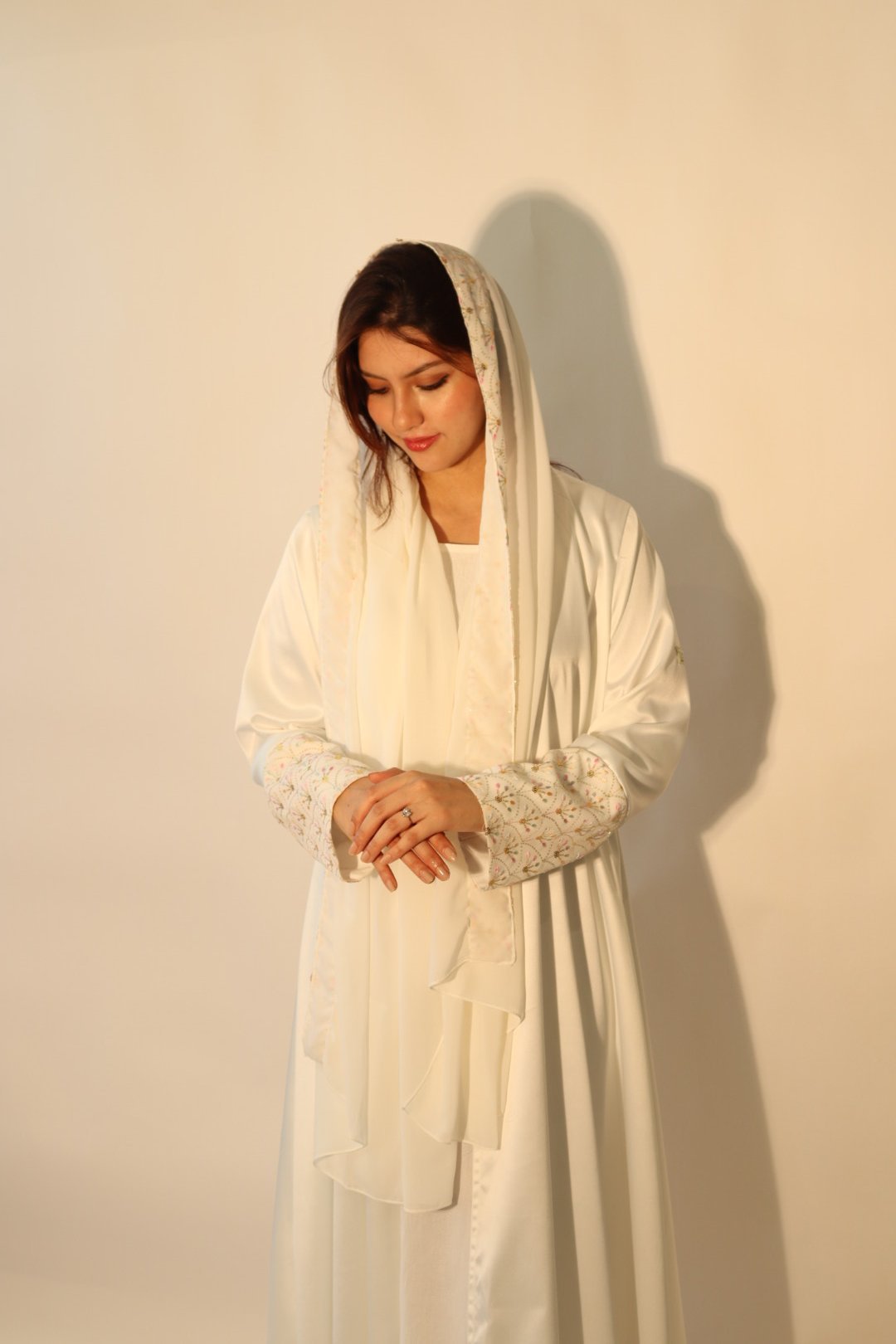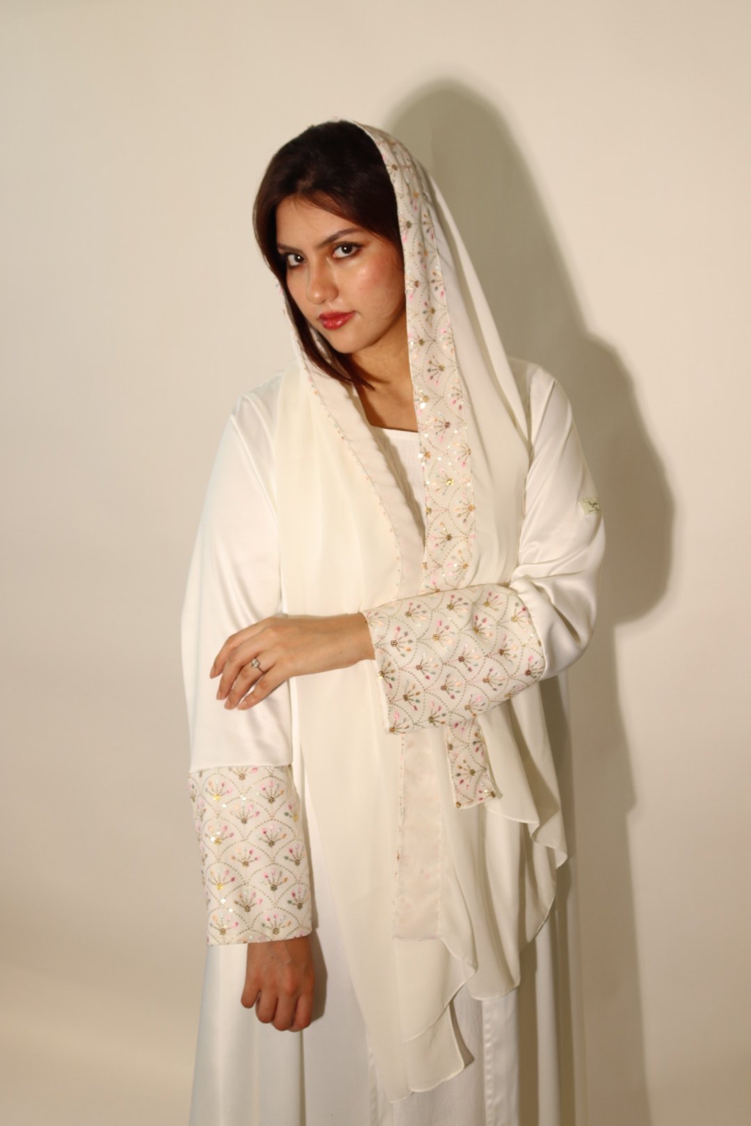 - ملاحظة يمكن تبطين العباية ببطانة شيفون أوف وايت بالكتابة بالملاحظات .