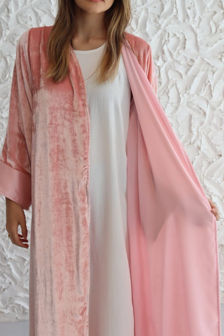 - ملاحظة يمكن تغيير لون العباية إلى تيفاني أو سماوي أو رمادي أو فايوليت فاتح أو أسود