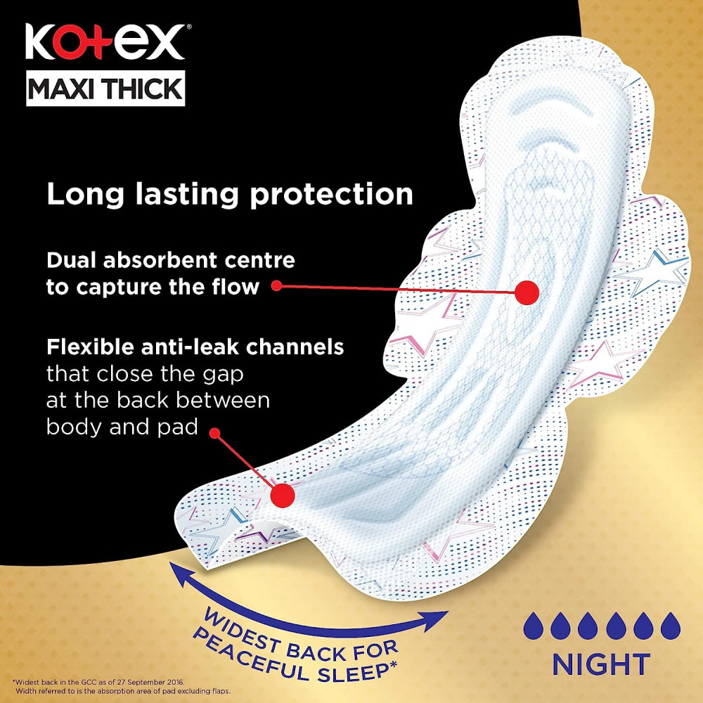 كوتكس فوط نسائية ليلية ماكسي سميكة بالأجنحة عريضة الخلفية للتدفق الكثيف 8 فوط صحية لنوم مريح وهانيء اسود / ذهبي