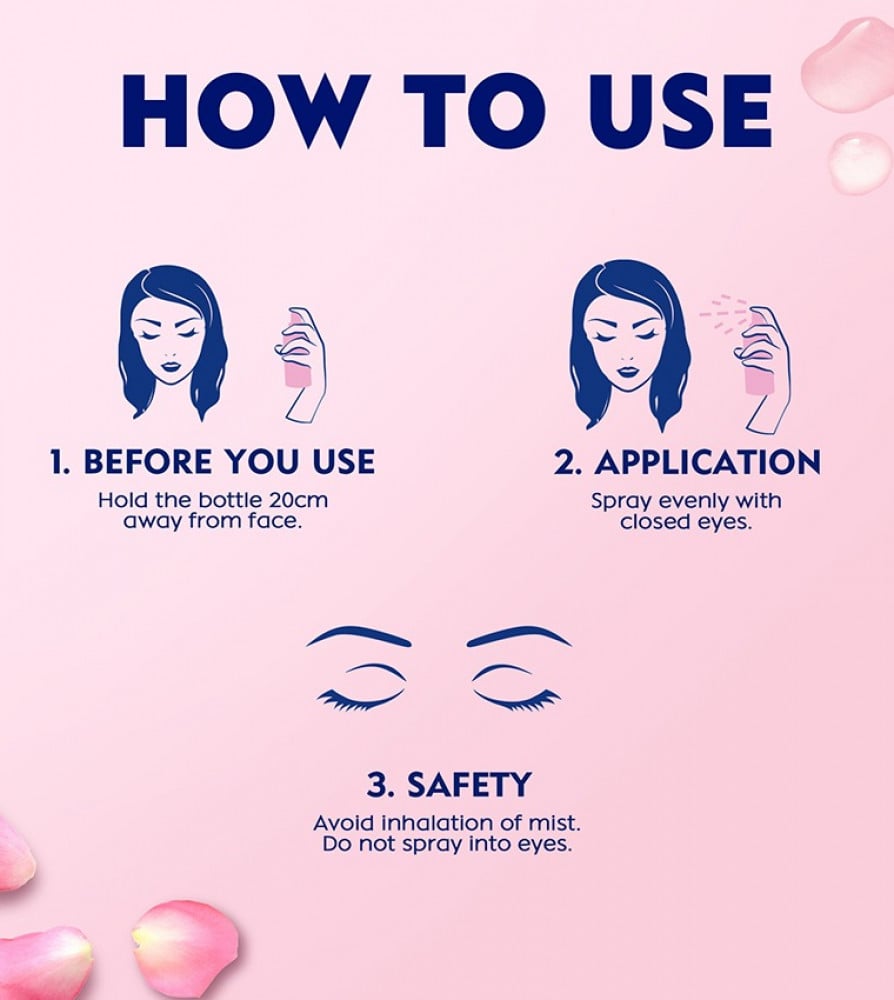 قم برشه على وجهك في أي وقت تحتاجه ، في الصباح لترطيب سريع ، خلال النهار لتجديد نشاطك. إذا قمت بتطبيقه قبل النوم ، فلن يحافظ على بشرتك رطبة طوال الليل فحسب ، بل سيساعدك أيضًا على النوم بشكل أسهل مع عطر الورد المهدئ.