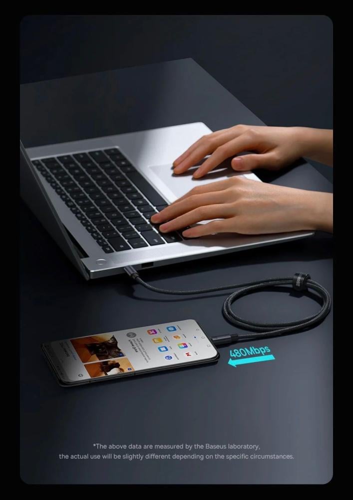- لا يقتصر على الشحن فقط، بل يدعم أيضًا نقل البيانات بسرعة عالية، مما يوفر لك سرعة نقل الملفات بين الأجهزة.