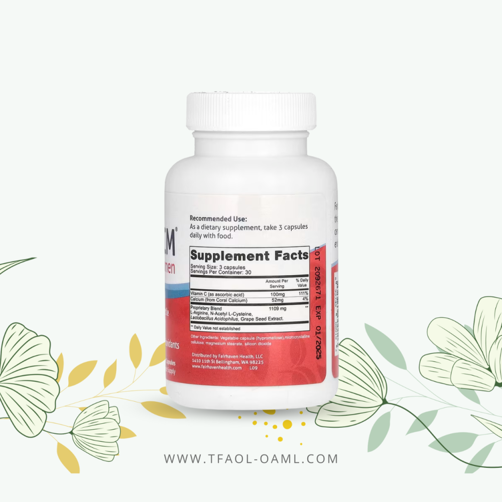 مصمم لتعزيز جودة خصوبة مخاط عنق الرحمغني بمادة ل-أرجينين ومضادات الأكسدة-يعالج بطانة الرحم الرقيقة ويعالج جفاف المنطقةالاستخدام : كبسولتين يوميا