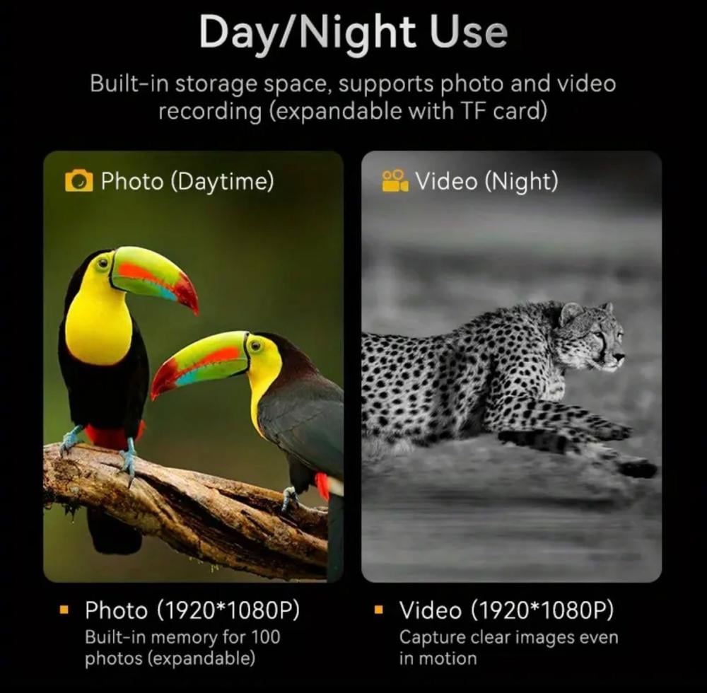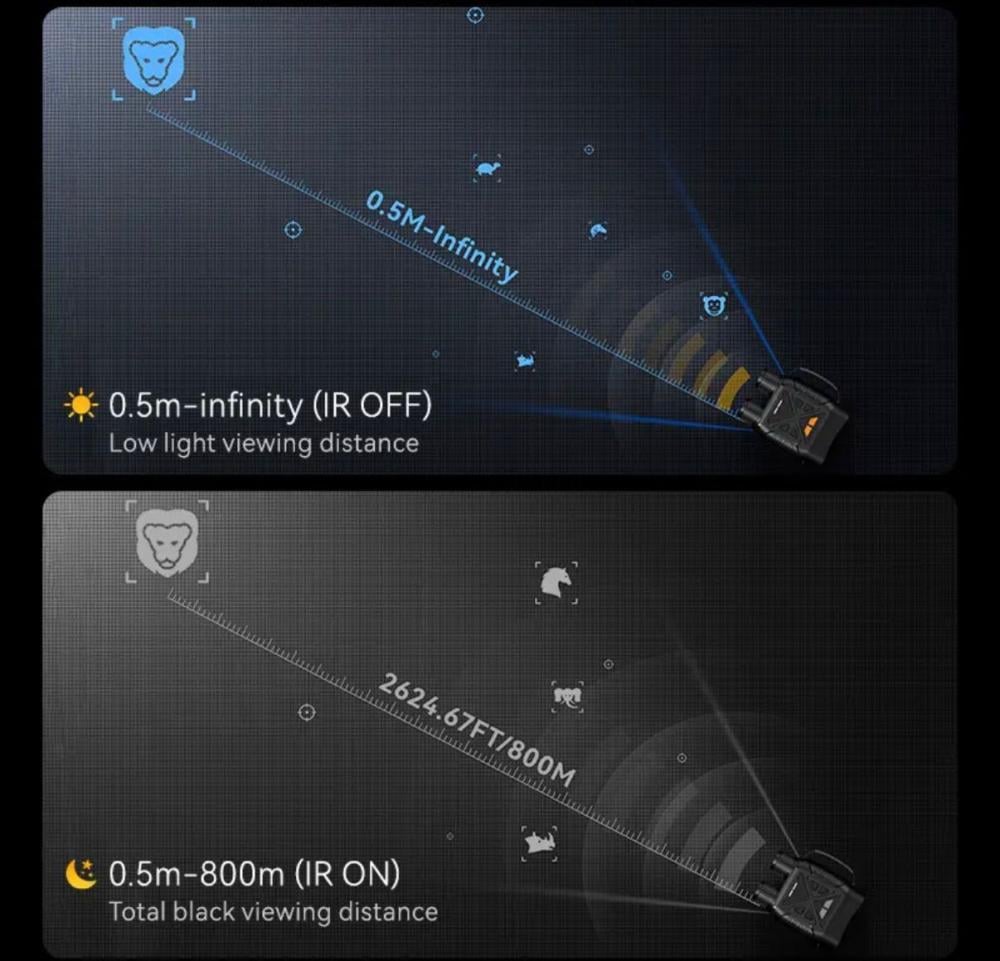 * رؤية ليلية فائقة الوضوح: يتيح لك رؤية واضحة في الظلام الدامس بفضل تقنية الرؤية الليلية المتطورة، مع مسافة رؤية تصل إلى 800 متر.