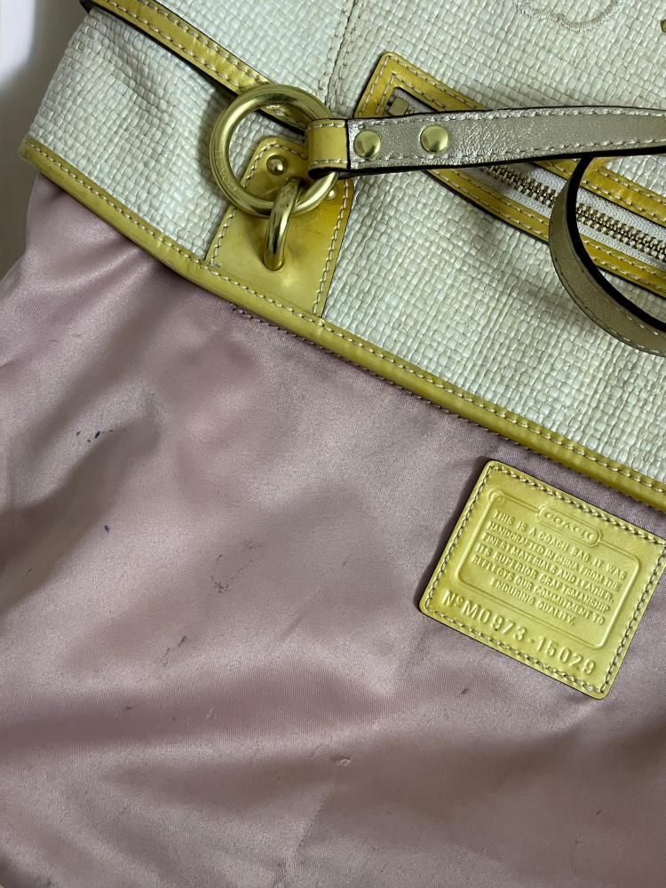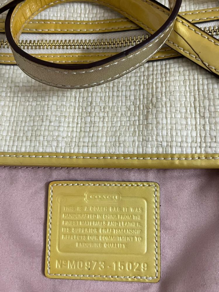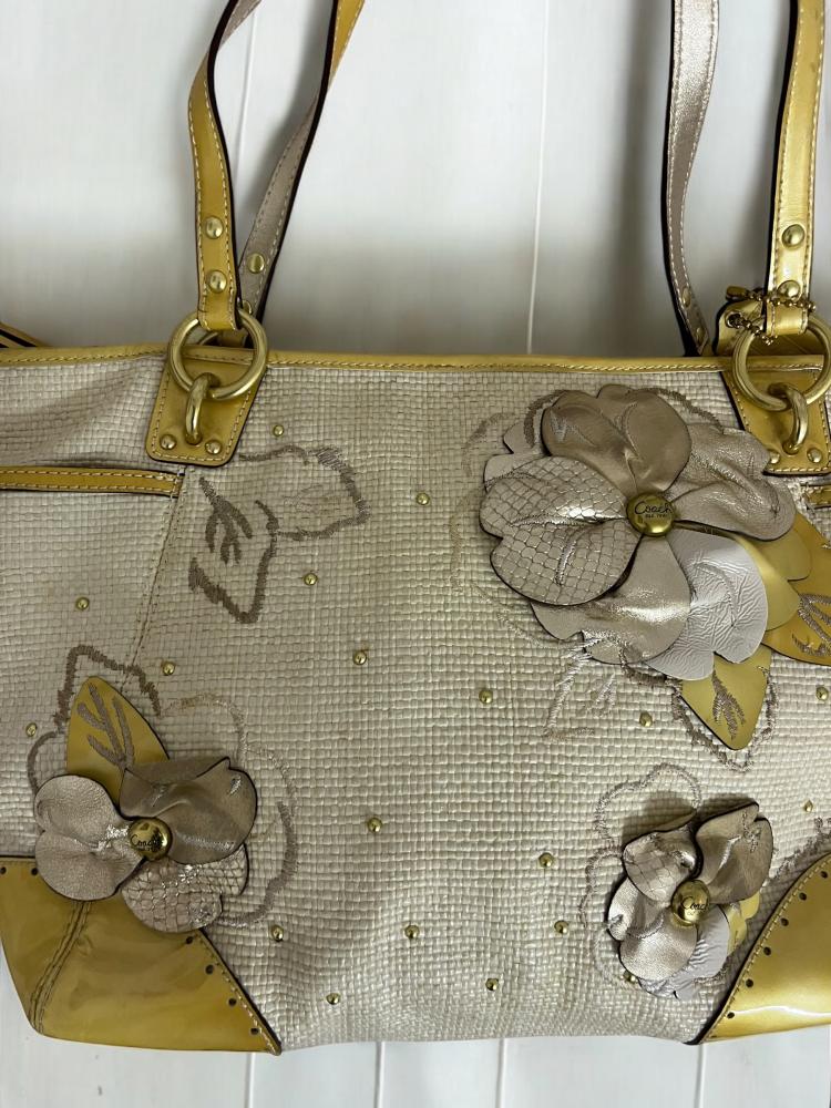 Vintage Coach Hamptons Leather Floral Straw Tote Shoulder Bag Cream Gold Limited