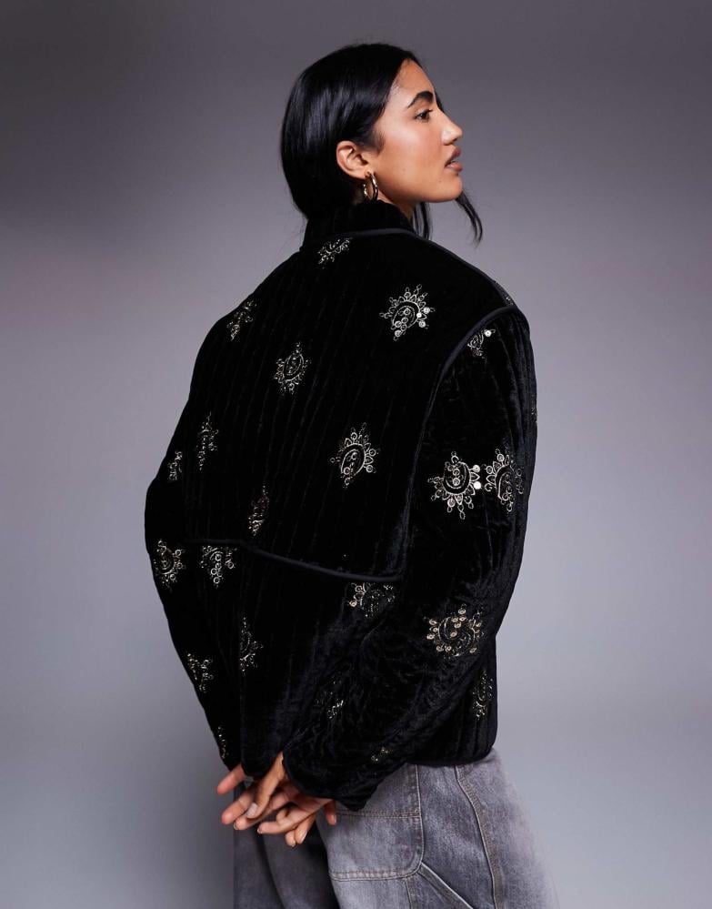 جاكيت اسود مخمل مع تطريز
