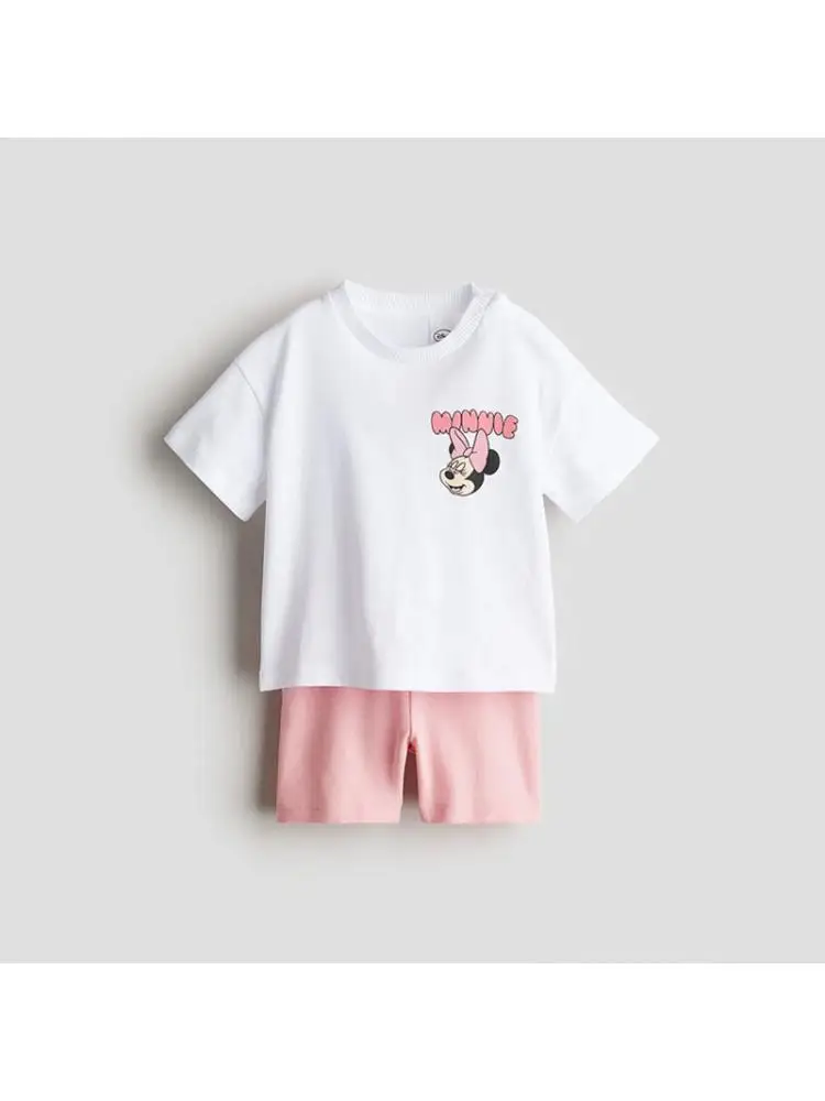 ملابس الصيف ديزني قصيرة الأكمام ملابس قصيرة الفتيان والفتيات العصرية عارضة التي شيرت فضفاض السراويل قطعتين الطفل لطيف الدعاوى