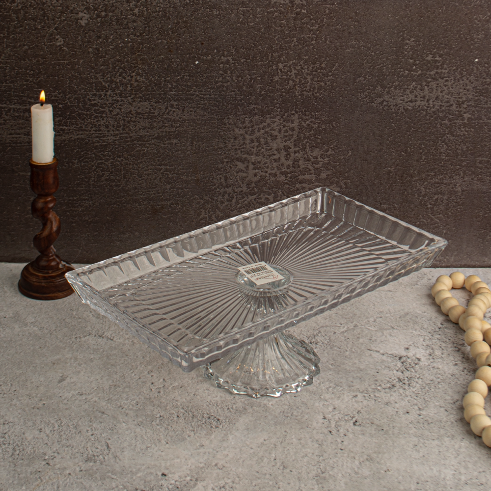 صحن تقديم كريستال مستطيل قزاز بقاعدة الحجم الكبير