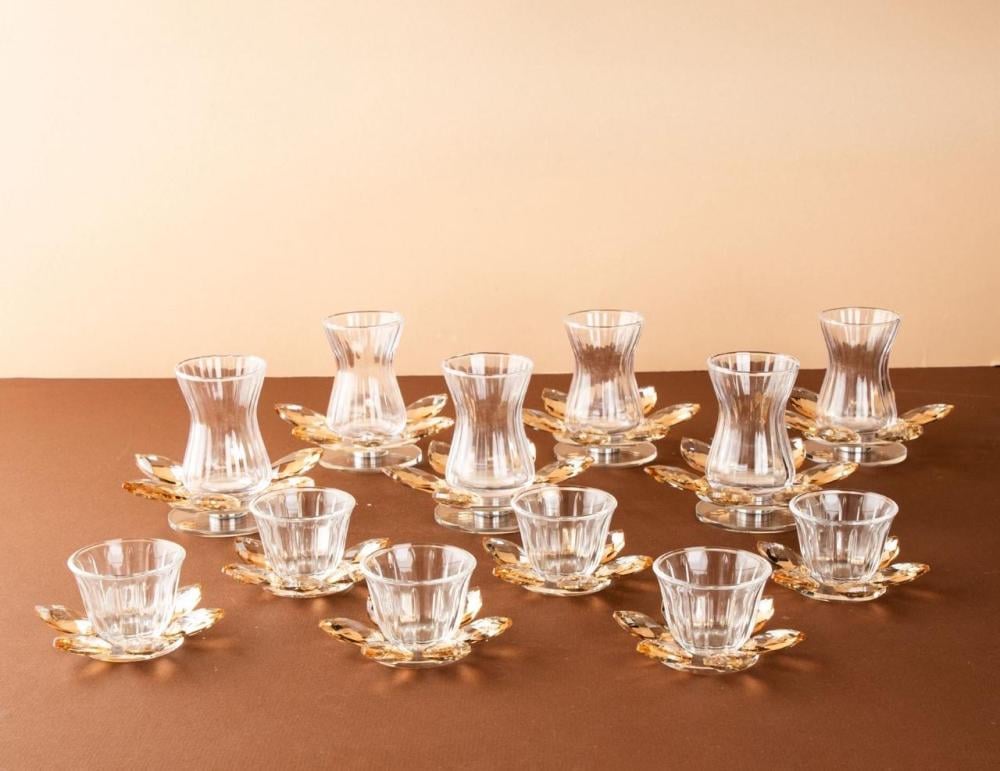 طقم ضيافة كريستال 6 فناجين قهوة و 6 بيالات شاي ذهبي