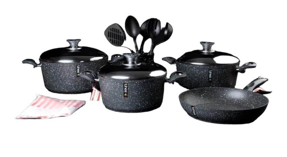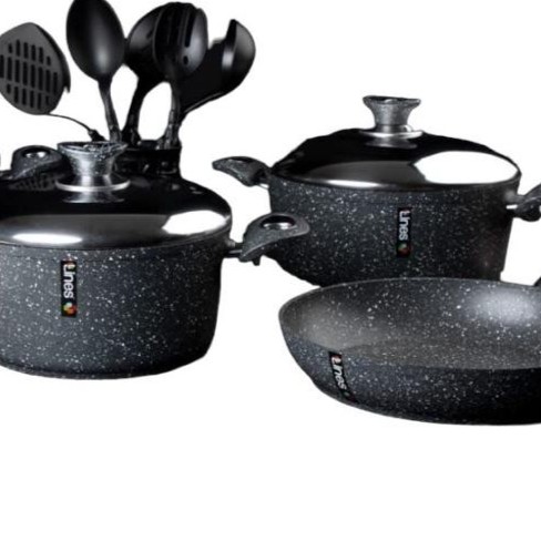 طقم قدور جرانيت رمادي التركية الفاخرة 14 قطة غطاء ستيل