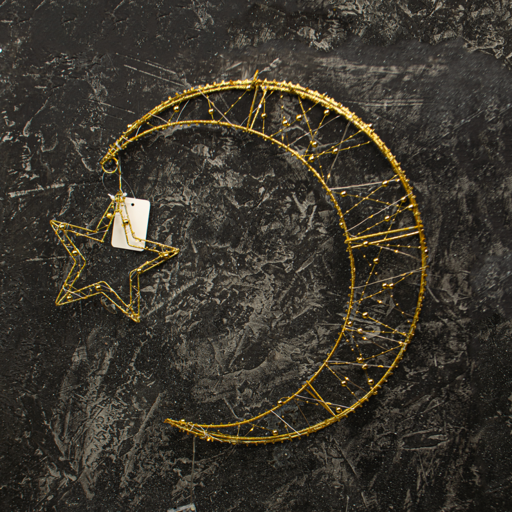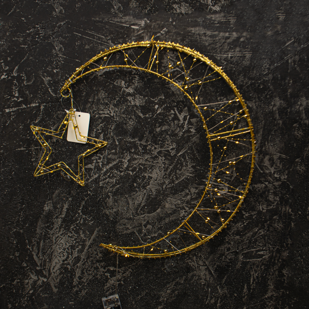 علاقة هلال رمضان مضيئة بالون الذهبي وسط