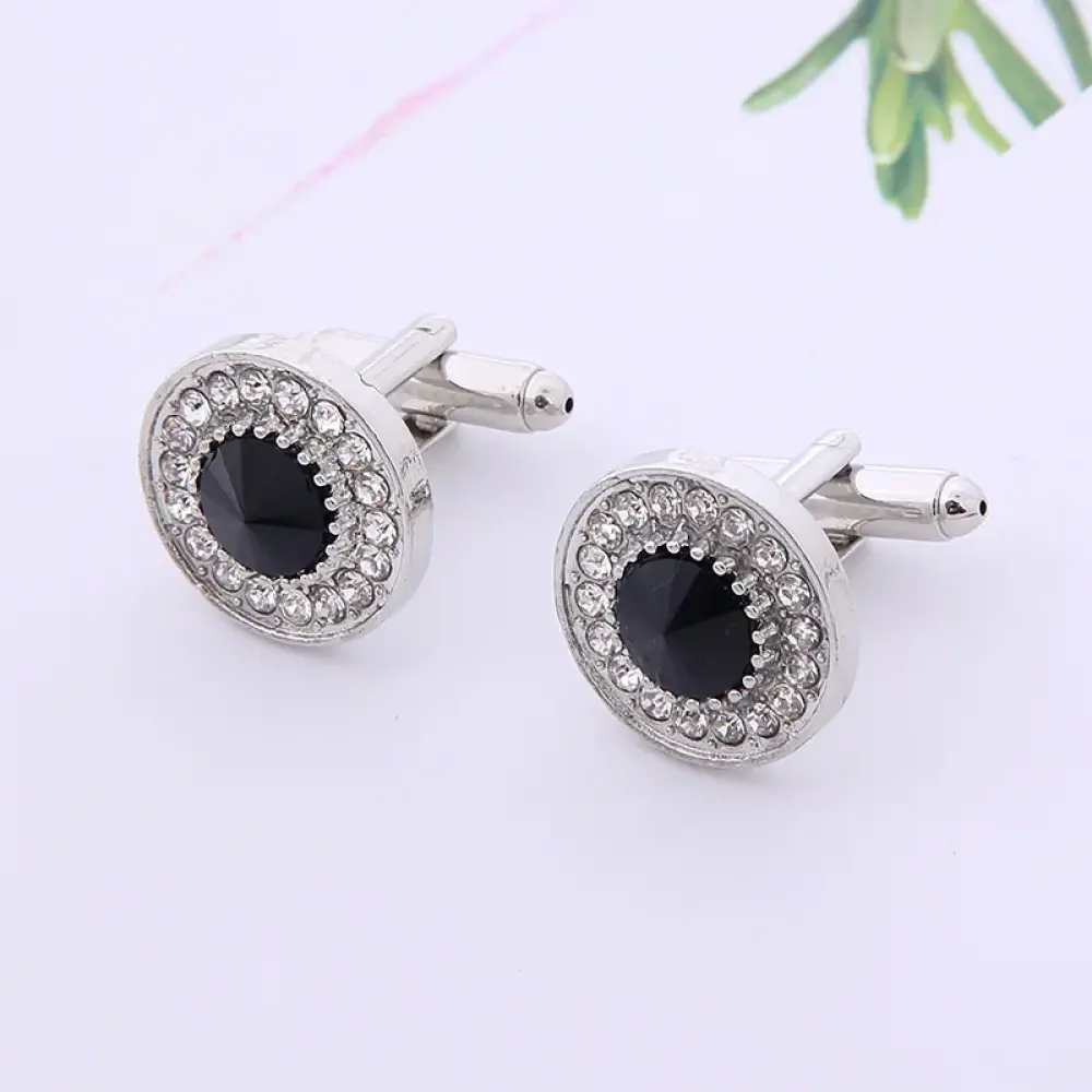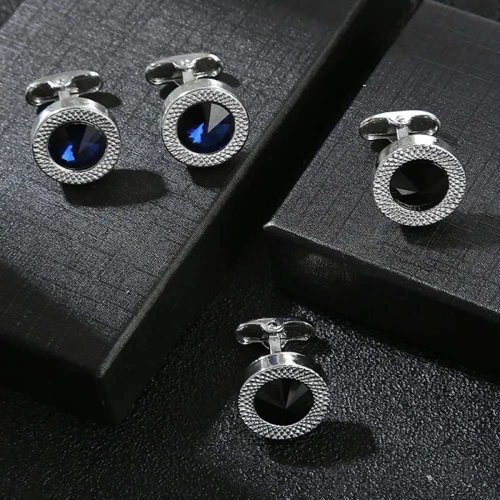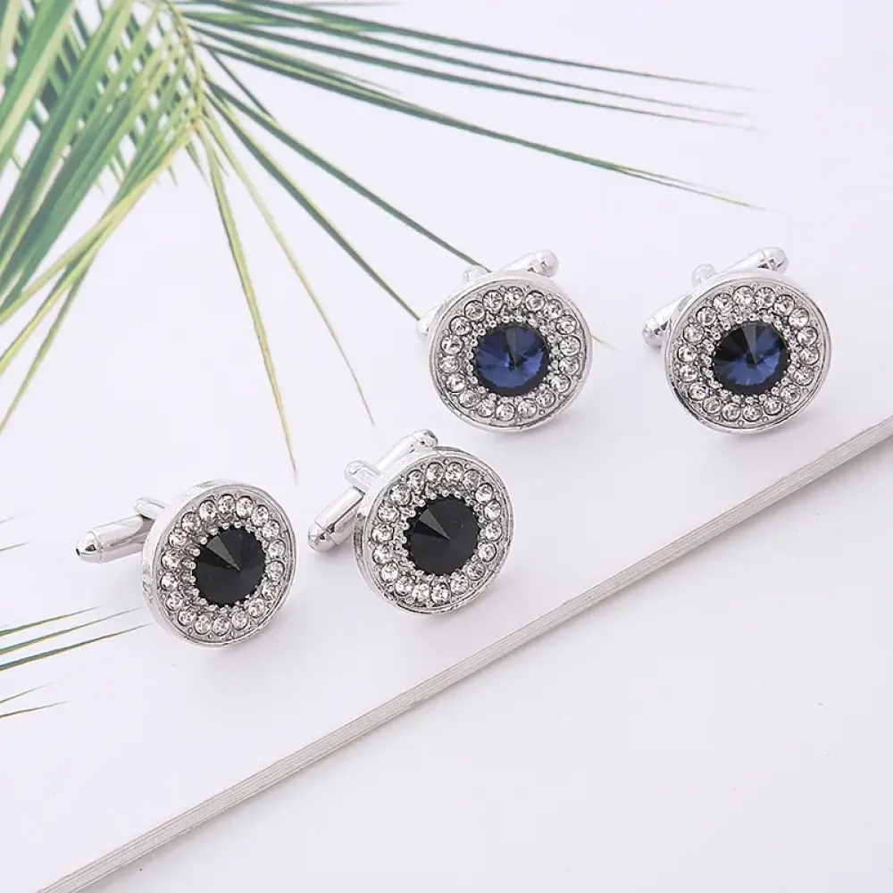 أزرار أكمام كريستال لامعة للرجال ، زر كم بدلة العمل ، فستان الزفاف الرسمي رابط الكفة ، أفضل الهدايا للرجال ، الأسود والأزرق