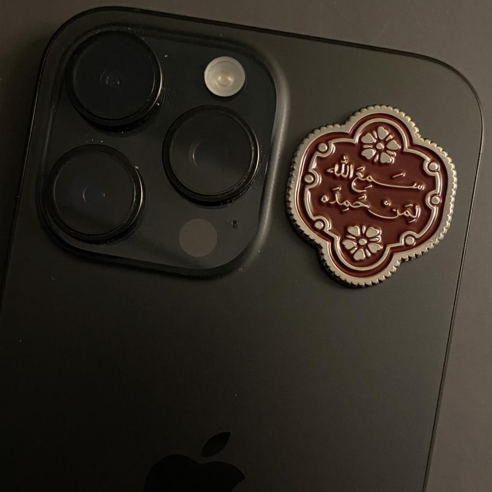 مُلصقٌ مَعدنيٌّ صغير يحمل : “سَمِعَ ٱللَّهُ لِمَنْ حَمِدَهُ”