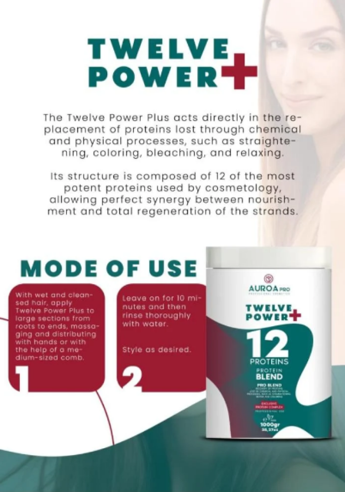 الوصف العام:Twelve Power+ من Auroa Pro هو ماسك علاجي احترافي للشعر يحتوي على خليط مركز من 12 نوع من البروتينات، مصمم خصيصًا لإصلاح الشعر التالف جدًا، الجاف، والمتقصف بعمق من الجذور حتى الأطراف.