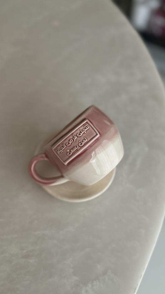 كوب مع طبق بعبارة ( تتجلى فرص الحياة لمن يسعى)
