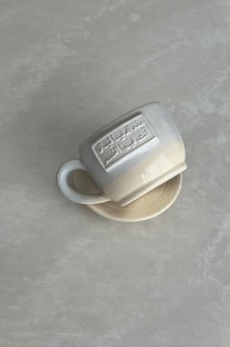 كوب مع طبق بعبارة ( يا سالبًا قمر السماء جماله)