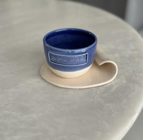 كوب مع طبق بعبارة ( ليه أنا عيني تشوف وما تشوف إلا بهاك)