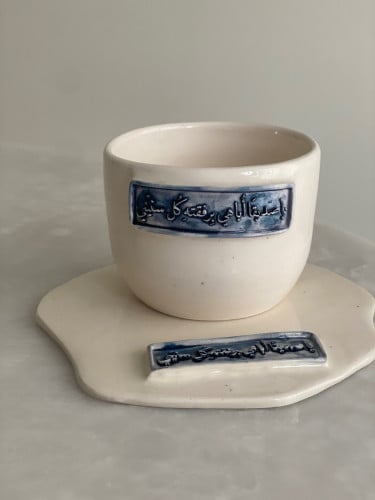 كوب مع طبق بعبارة ( يا سالبًا قمر السماء جماله)
