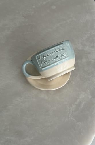 كوب مع طبق بعبارة (وتشاء أنت من الأماني نجمةً ويشاء ربك أن يناولك القمر)