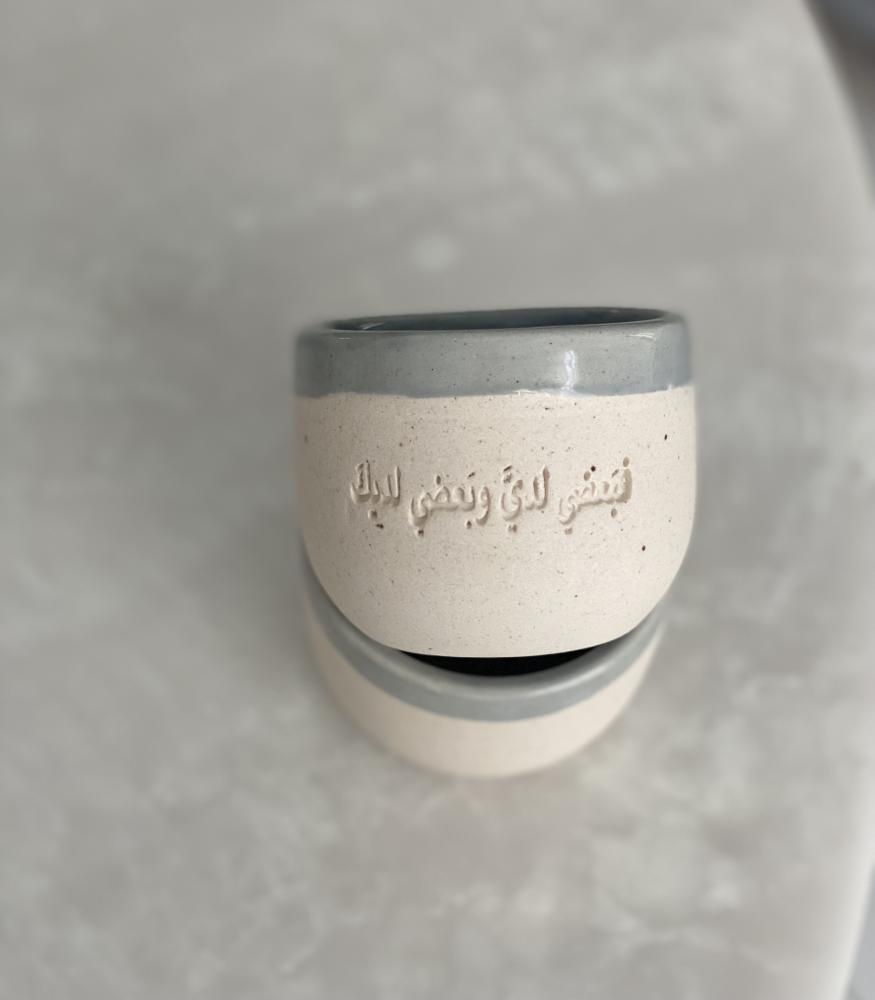 كوب مع قاعدة "كوستر"بعبارة (يا سالبًا قمَرَ السَّماءِ جَمالَهُ)