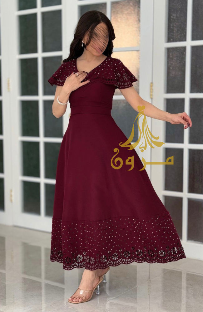 تألقي بإطلالة تعكس الرقي والأنوثة مع فستان "إمبراس" من مزون فاشن. يتميز الفستان بتصميم علوي فريد على هيئة "كاب" قصير من الدانتيل الفرنسي المطرز بدقة، مما يمنحكِ مظهراً محتشماً وفاخراً في آن واحد. تمتد زخارف الدانتيل والكنار المشغول يدوياً لتزين حافة الفستان السفلية، مما يضفي توازناً بصرياً ساحراً.