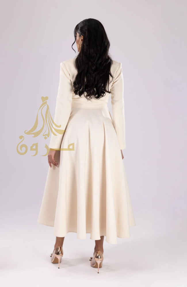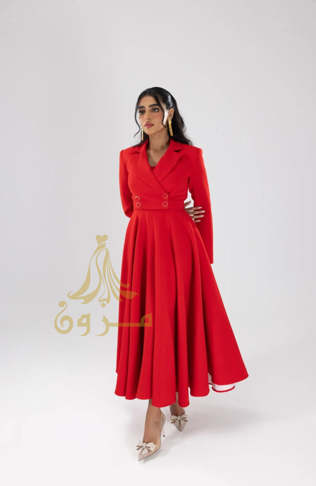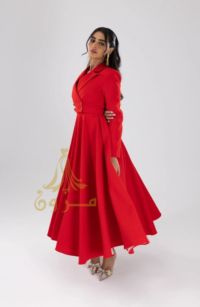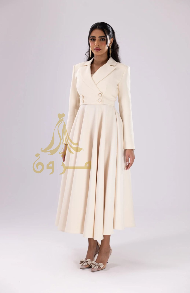 استمتعي بإطلالة تجمع بين الجرأة والرقي مع فستان "فيولا المزدوج " من مزون فاشن. ينفرد هذا التصميم بقصة علوية مستوحاة من جاكيت "البليزر" مع ياقة كلاسيكية وأزرار أمامية أنيقة، لينساب بنعومة إلى تنورة واسعة "كلوش" تمنحكِ حركة ملكية وحضوراً طاغياً.