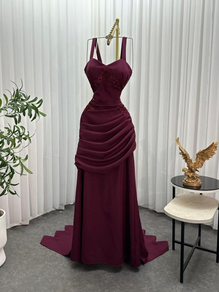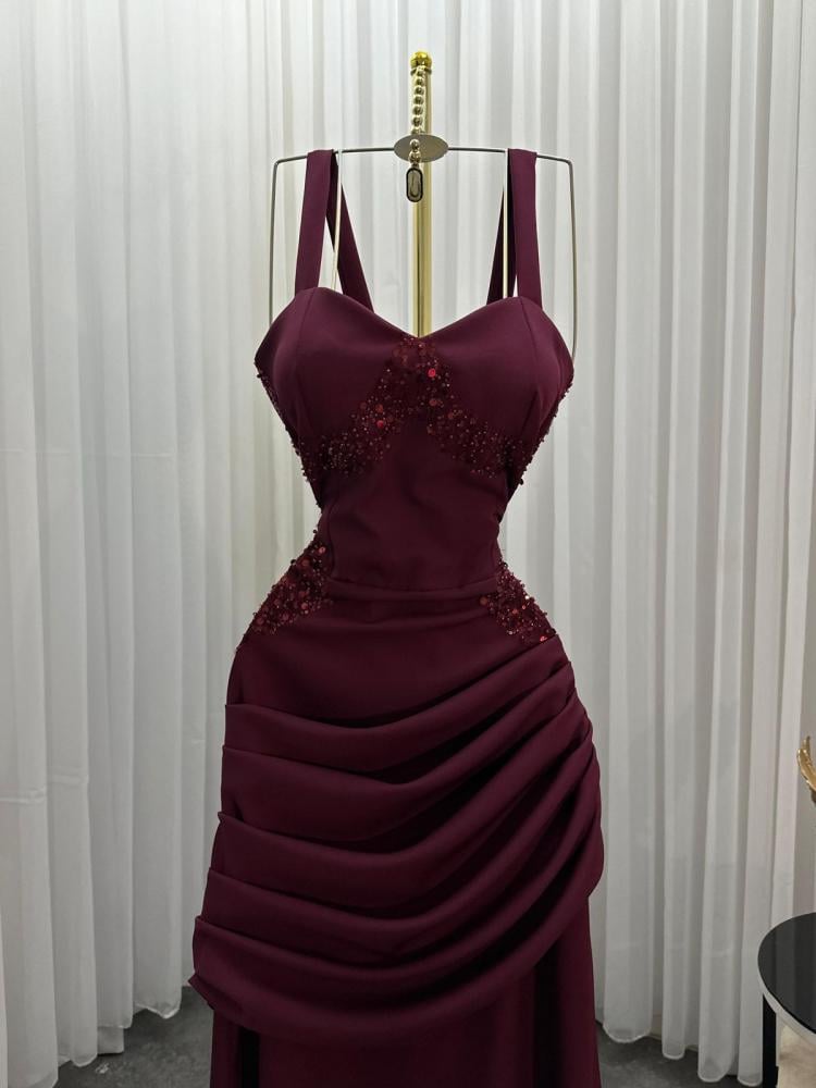 في تجسيد للأنوثة والفخامة، يبرز هذا الفستان بتصميم استثنائي من مزون فاشن. يزهو الفستان بلونه الخمري العميق، ويتألق الجزء العلوي بـ شك يدوي من الترتر والخرز ، مما يمنح الصدر والخصر إضاءة آسرة. ينسدل الفستان بقصة واسعة ومحددة عند الخصر، وتتميز التنورة بتفصيل طيات المنسدلة المصنوعة من قماش ناعم فاخر، لتضفي حركة ملكية ورشيقة تخطف الأنظار في أرقى السهرات.
