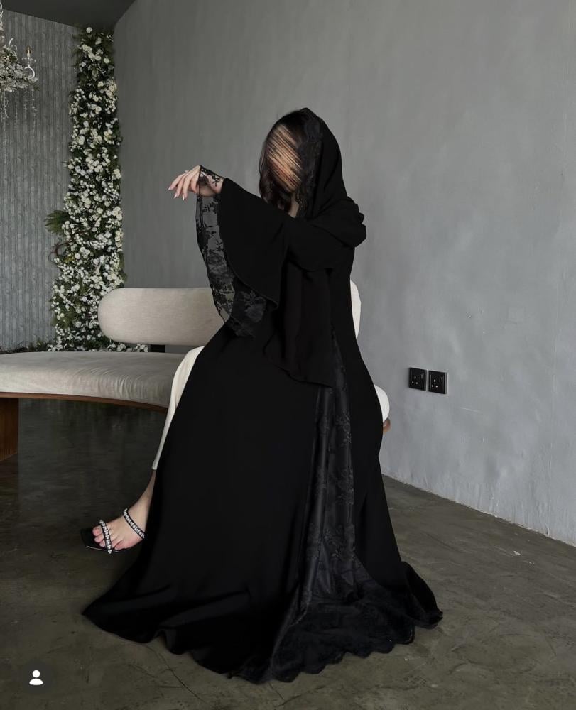 العبايه الأكثر طلباً والمثاليه لك والأكثر سواداً تتميز بالأناقه والرقي وقصه تحلي وتجمل طلتك مصممه من القماش الملكي الفاخر بسواده الفاحم بقصه كلوش مع كسرات الدانتيل الجانبيه الانيقه