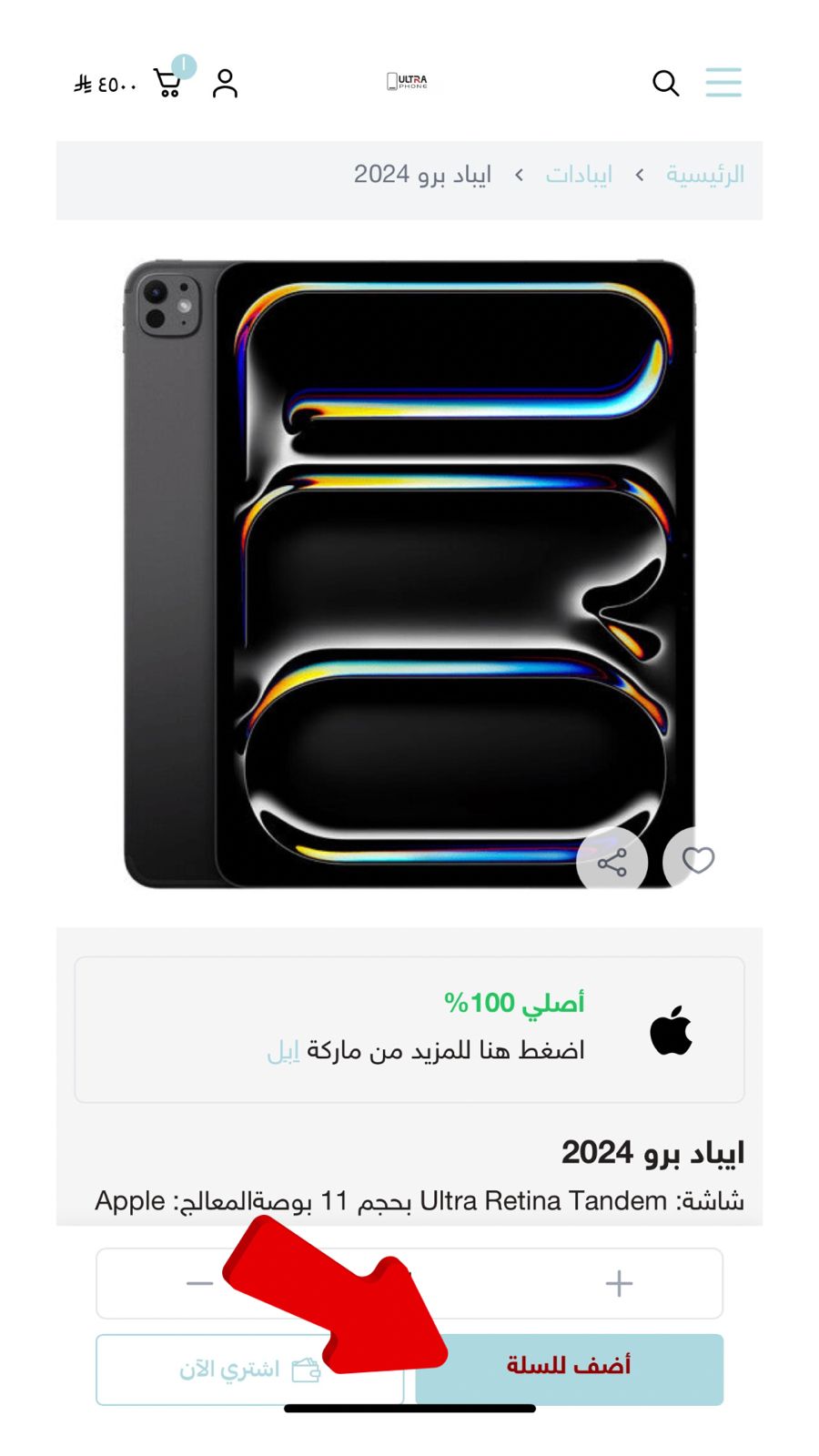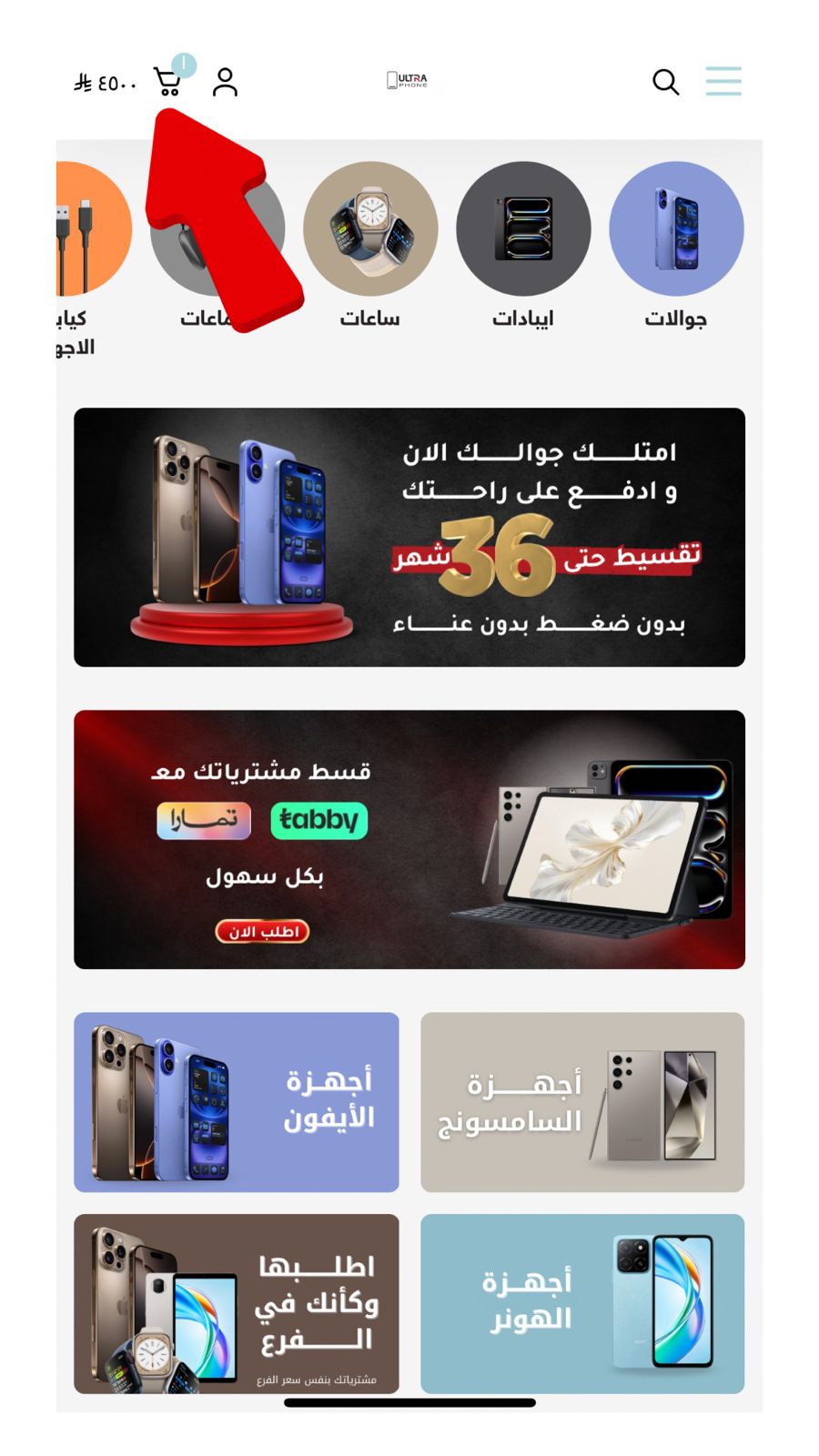 بعد اضافة المنتج للسلة انقر على ايقونة السلة وموقعها اعلى يسار الصفحة