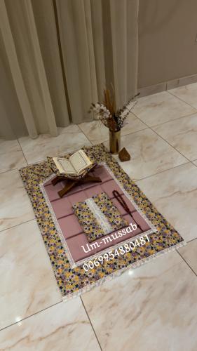 🔺السجادة تمت خياطتها مع اسفنج داخلي سمك وسط ارتفاع 1.5 سم لراحة السجود عليها.