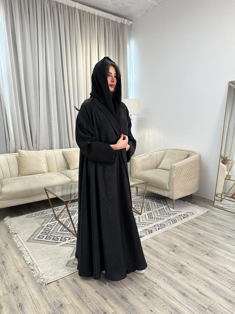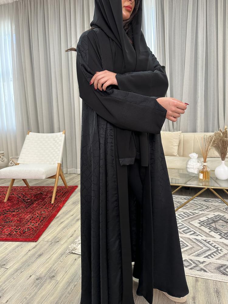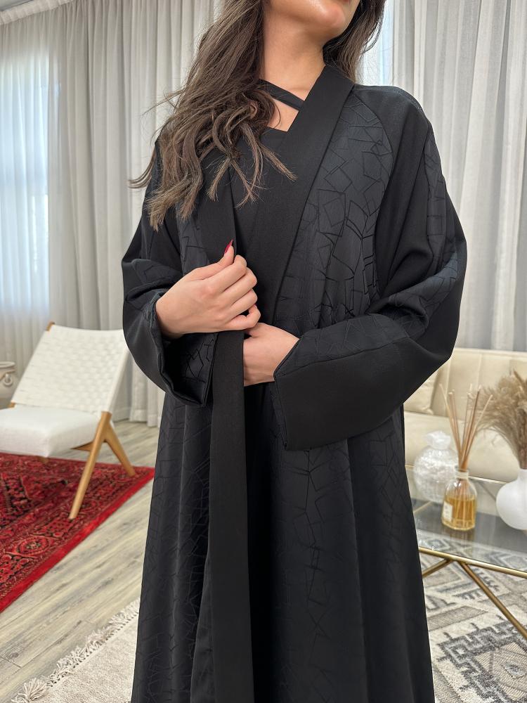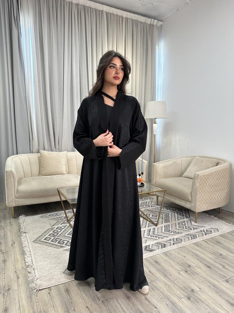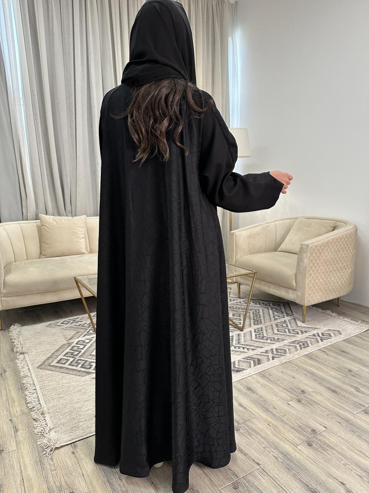 UN-808 عبايه قماش جاكار + كتان لون اسود كلوش