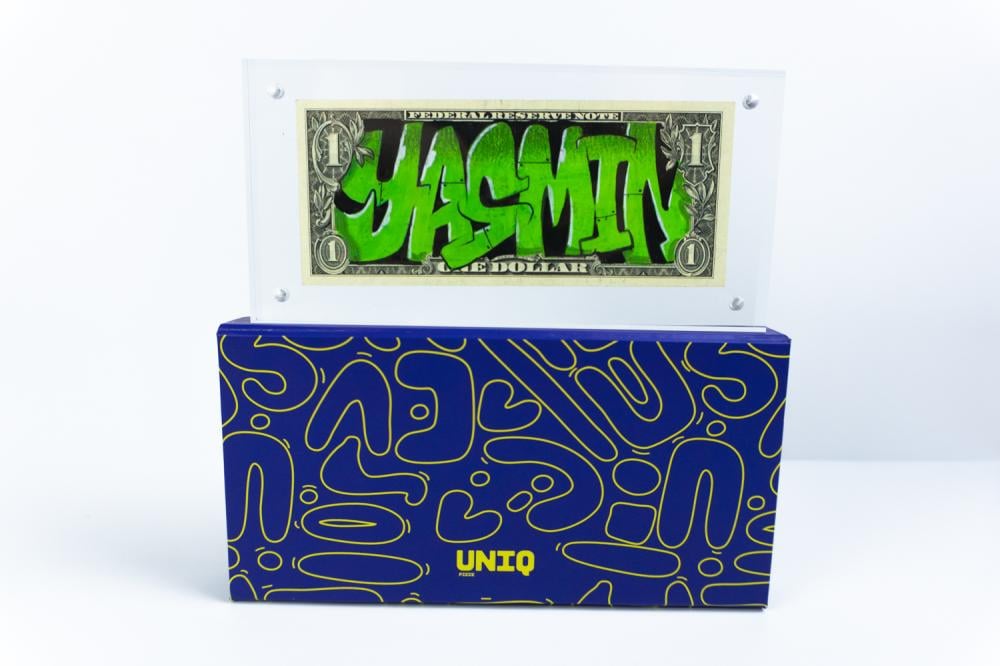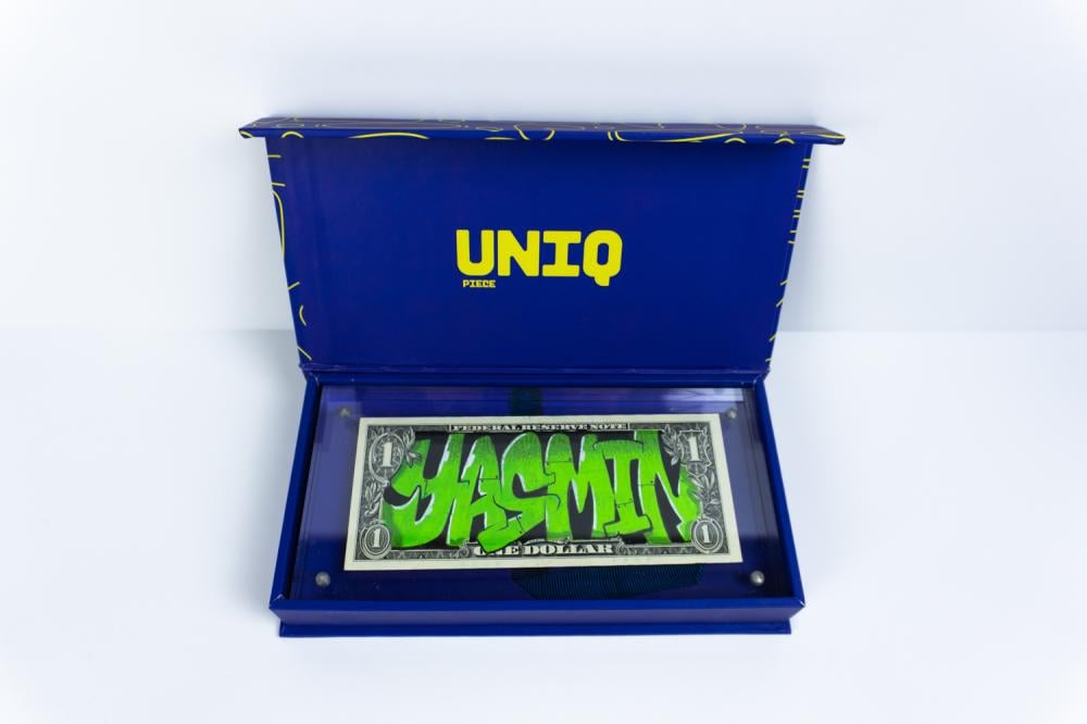 واحد دولار امريكي قطعة نادرة وحقيقية برسومات يدوية ولا يوجد نسخة اخرى يحتوي على برواز لعرض القطعة بشكل آمن بتغليف مميز