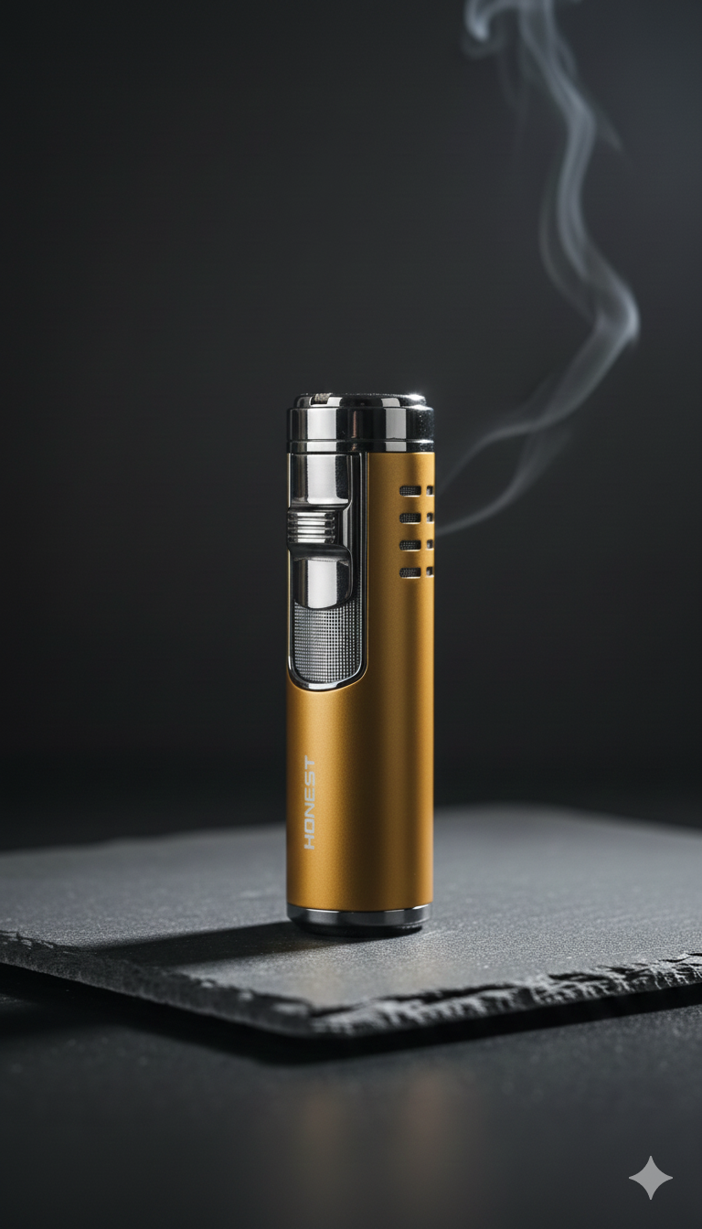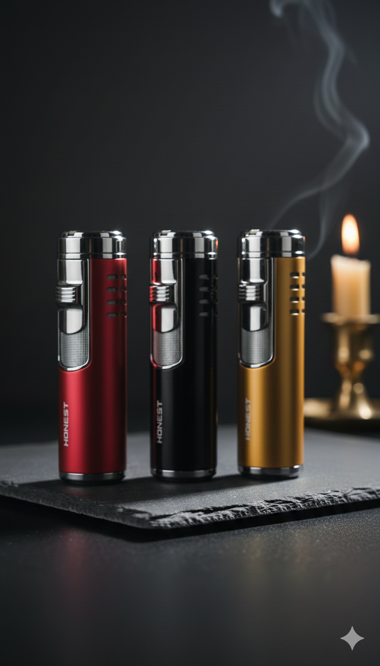 النوع: ولاعة سيجار احترافية بنظام "التوربين" (Jet Flame) الذي يوفر لهباً أزرقاً شديد القوة ومقاوماً للرياح.