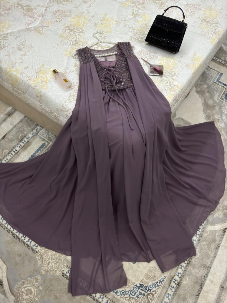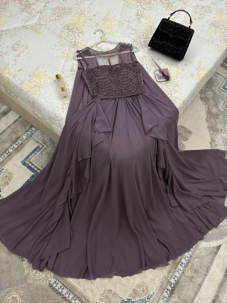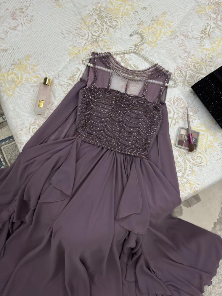 فستان أميمة بنفسجي لحمي بدون أكمام