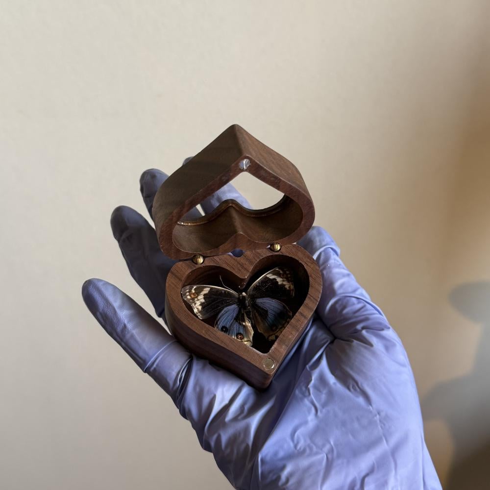 فراشة Junonia orithya داخل صندوق قلب صغير