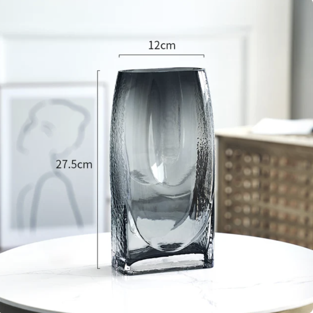 مزهرية زجاجية مصنوعة من أجود أنواع الزجاج، تتميز بصفائها ونقائها اللذين لا مثيل لهما.