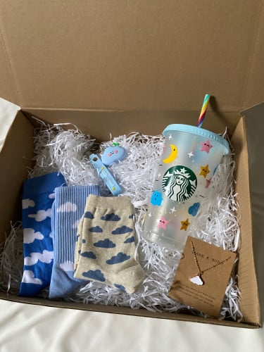 اعلم بأن جميع المنتجات في البوكس قد تأتي مثل الصورة أو بأشكال وألوان اخرى ولكن ستأتي جميع المنتجات بالشخصية الموضحة