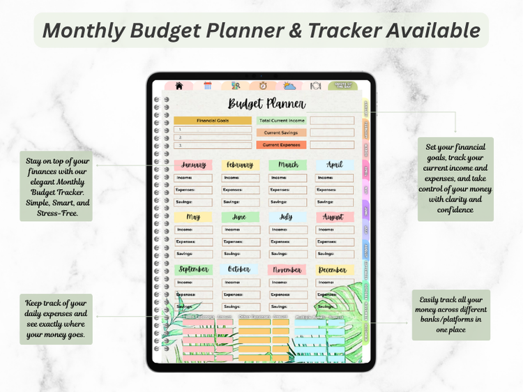 planning not just productive — but aesthetic, inspiring, and effortless. Whether you're managing your daily tasks, setting financial goals, or simply keeping track of life’s little moments, this planner is your all-in-one digital companion.