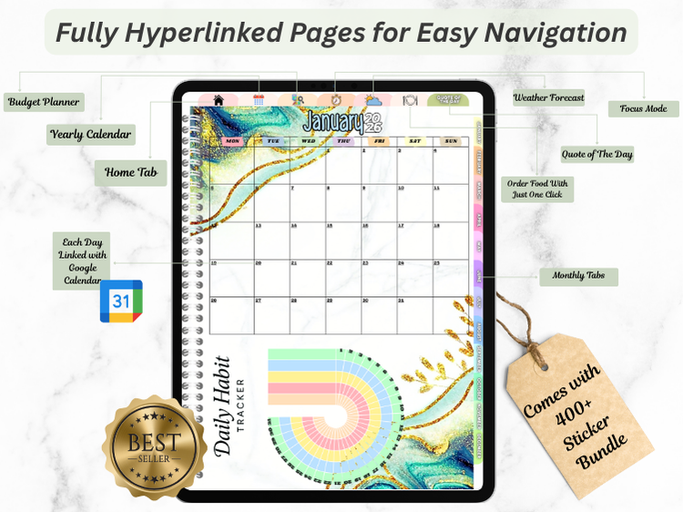 🌿 Fully Hyperlinked Pages – Move easily between months, weeks, and days with just one tap.