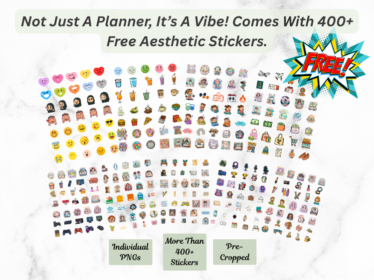 🏷️ FREE Pre-Cropped Individual Stickers (400+!) – Aesthetic digital stickers included for free.